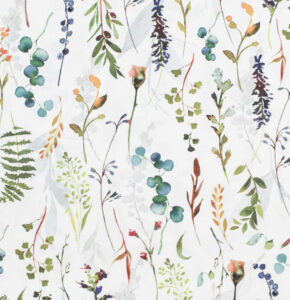 - 100% Baumwolle bei folgenden Stoffen: Perforierte Baumwolle – Beige, Perforierte Baumwolle – Braun, Trachtenmuster, Cremeblumen, Naturbaumwolle, Kirschblüte, Pastellblumen, Vögel, Rosen, Blaubeeren, Eukalyptus 2, Eukalyptus 1, Blumenwiese, Nachtwiese, Gepardenmuster, Klatschmohn.